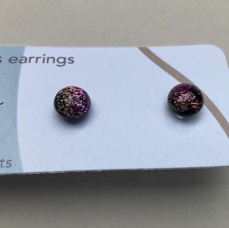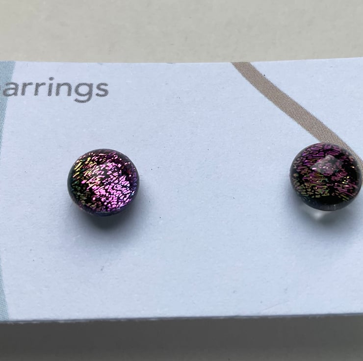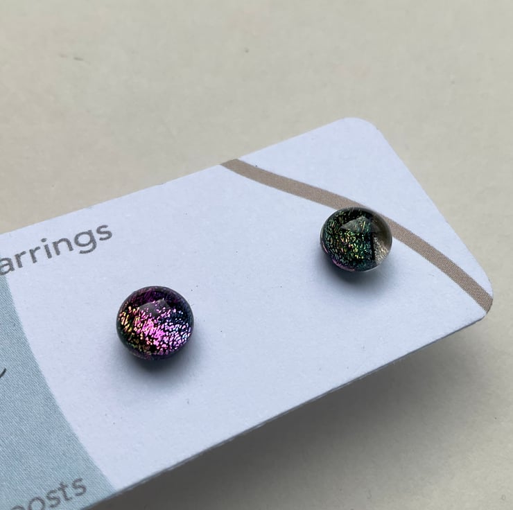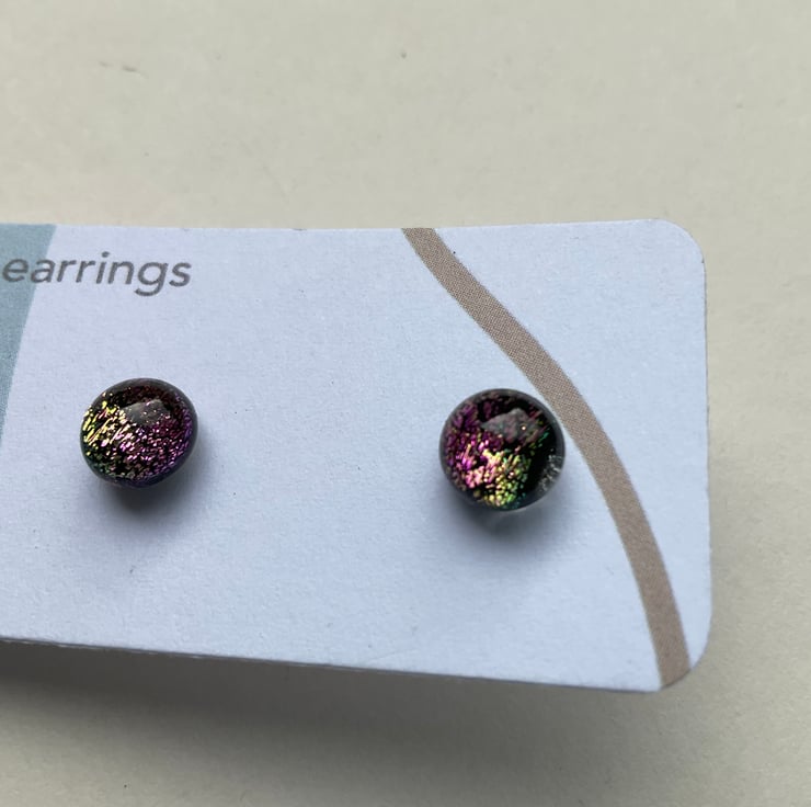 These are handmade fused glass stud earrings. All the glass has been cut by hand from bullseye art glass and fused within my kiln. These are beautiful delicate stud earrings with silver plated backs.