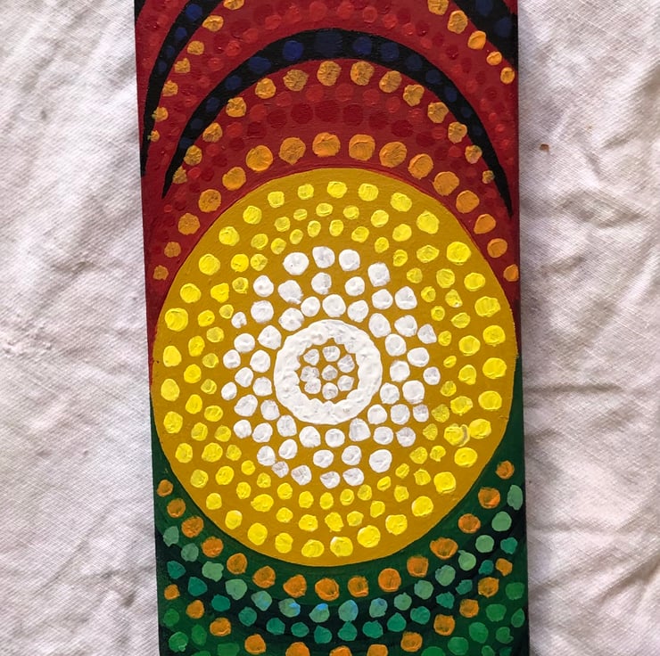 Small acrylic dot painting on board, a study in colour & shape, to brighten any wall.