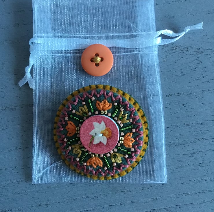 This Hand Embroidered Daffodil Brooch would make a perfect gift…for a birthday, as a friendship, retirement, thank you or Christmas gift. ……or to treat yourself. It’s light to post so an ideal letterbox gift to post. A lovely brooch for someone who likes flowers…..
