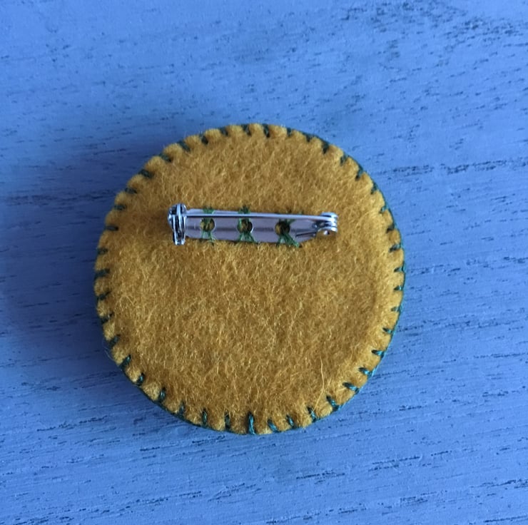 This Daffodil Brooch is a nice wearable size, 2 inches (5 cms). A metal brooch pin with a safety catch, for secure wear is stitched onto the back.