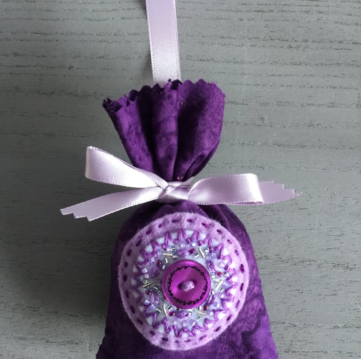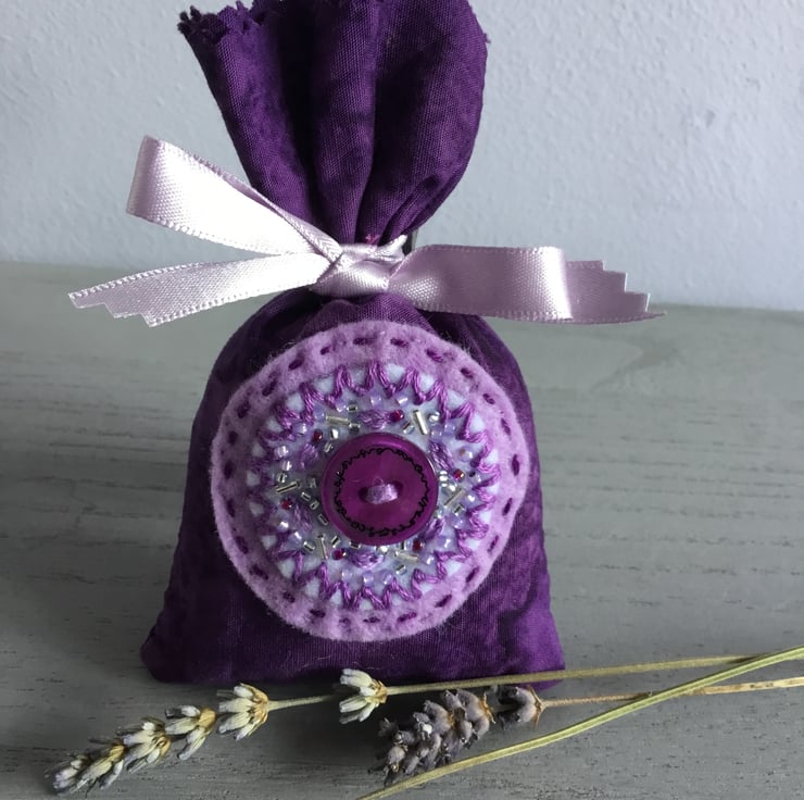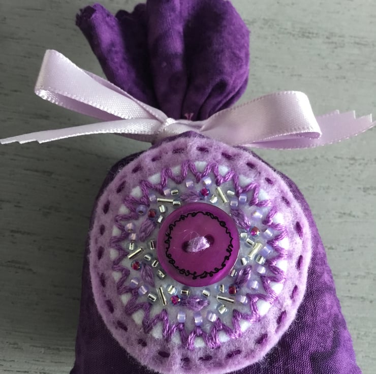 This Hand Embroidered Purple Button Lavender Bag is ideal as a birthday, friendship, thank you, retirement or Christmas gift……or to treat yourself….