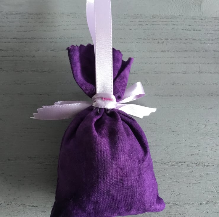 This fabric bag is 3.50 by 2.50 inches (9.50 x 6 cms) in size. It’s filled with lovely lavender grown in my garden in Yorkshire…….give the bag a squeeze and the lovely lavender fragrance spills out into the home….