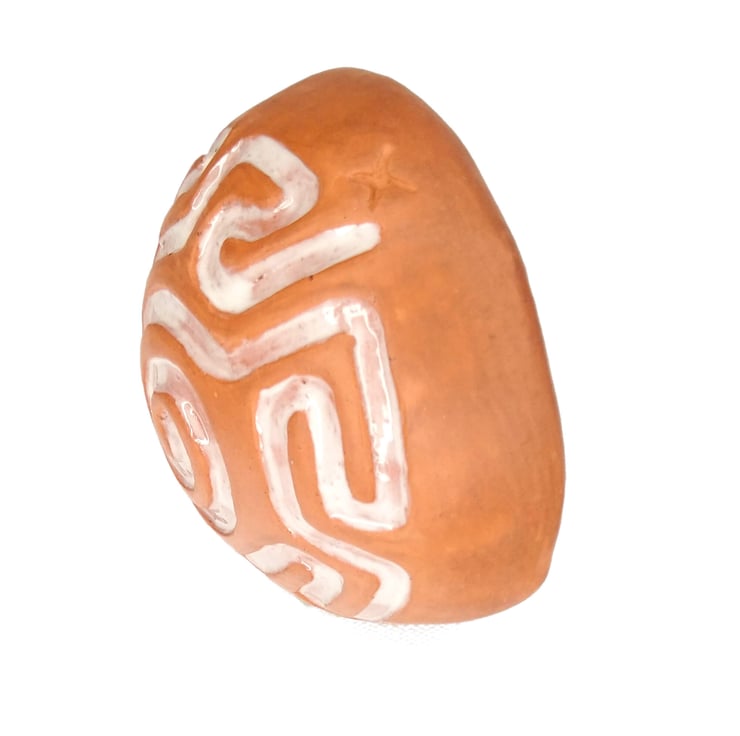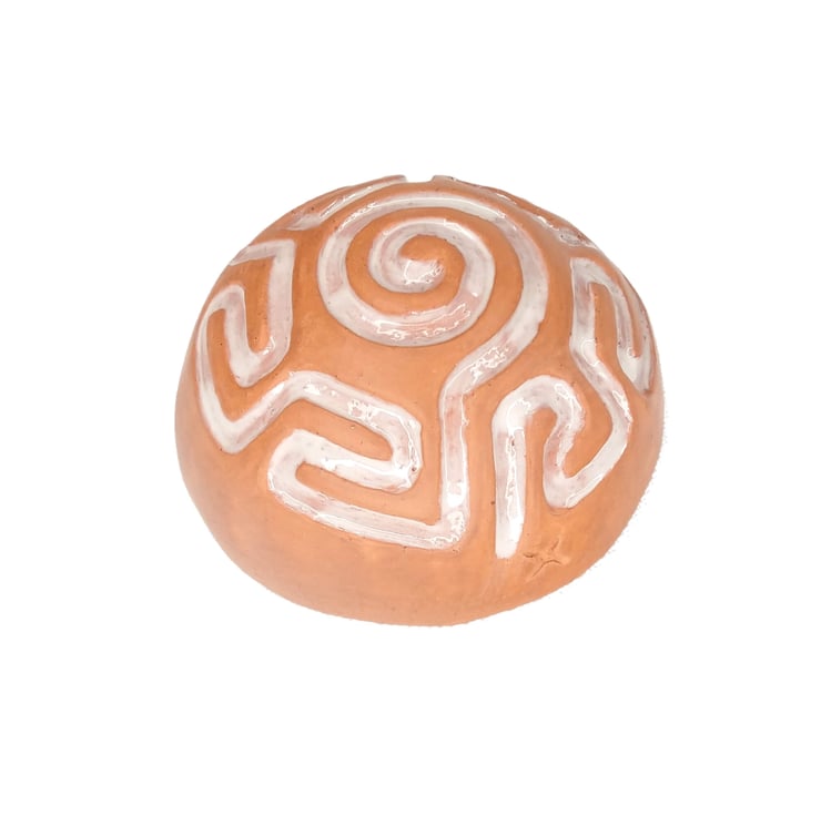 This handmade labyrinth is double-sided, each side designed to take you on a journey clock or anticlockwise. Fitting snugly in the hand you can trace the flat side of the labyrinth or if placed on a table, on its flat side, you gain access to the spherical labyrinth for the up and downhill “walk”.