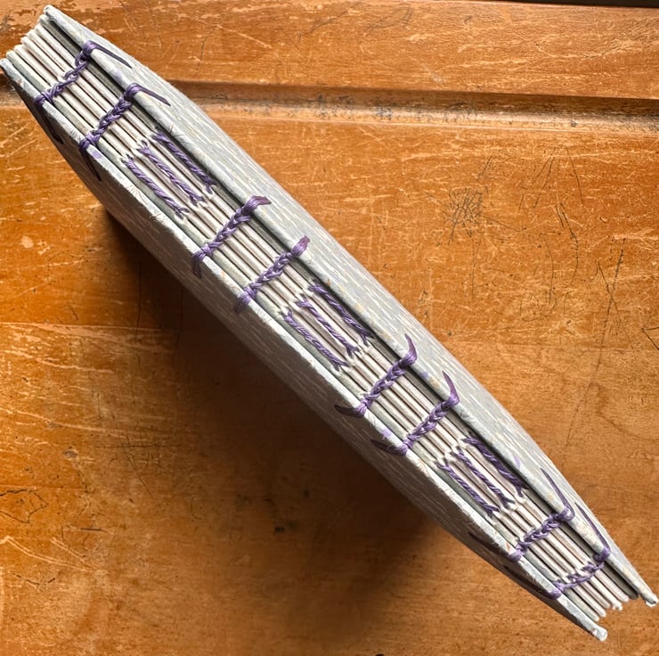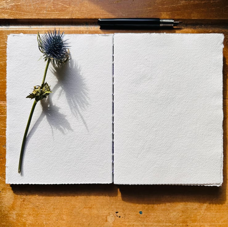 The 48 pages (96 sides) are 100gsm white Khadi paper with deckled edges.