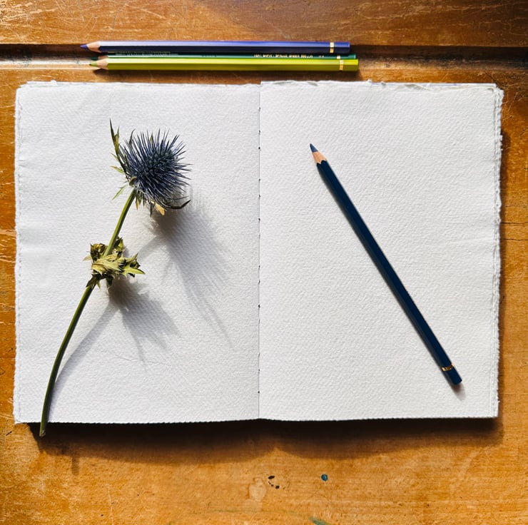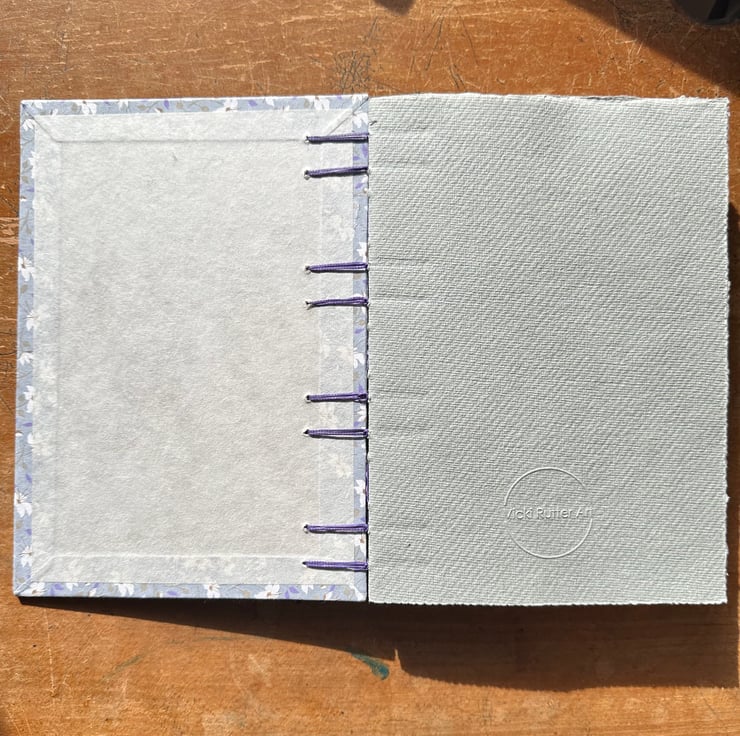 This is a lovely 48 page A5 sketchbook. It has been bound using Coptic stitching which is both beautiful and strong. It allows the pages to lay flat when the book is open, perfect for sketching and writing.