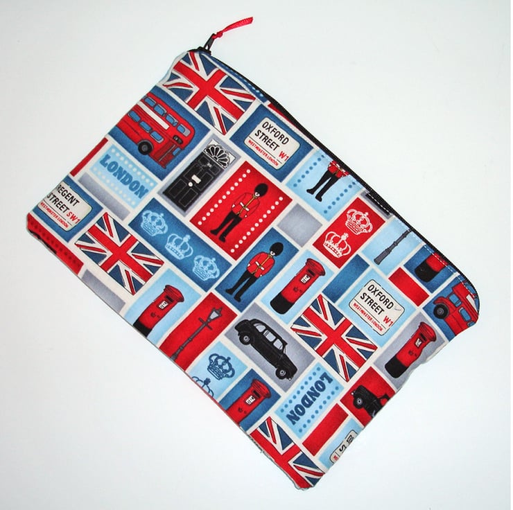 Featuring London Icons - Red Bus / Telephone Box / Guards / Union Jack etc in Red White Blue and Black