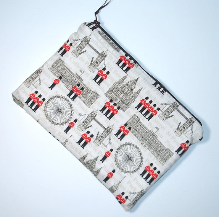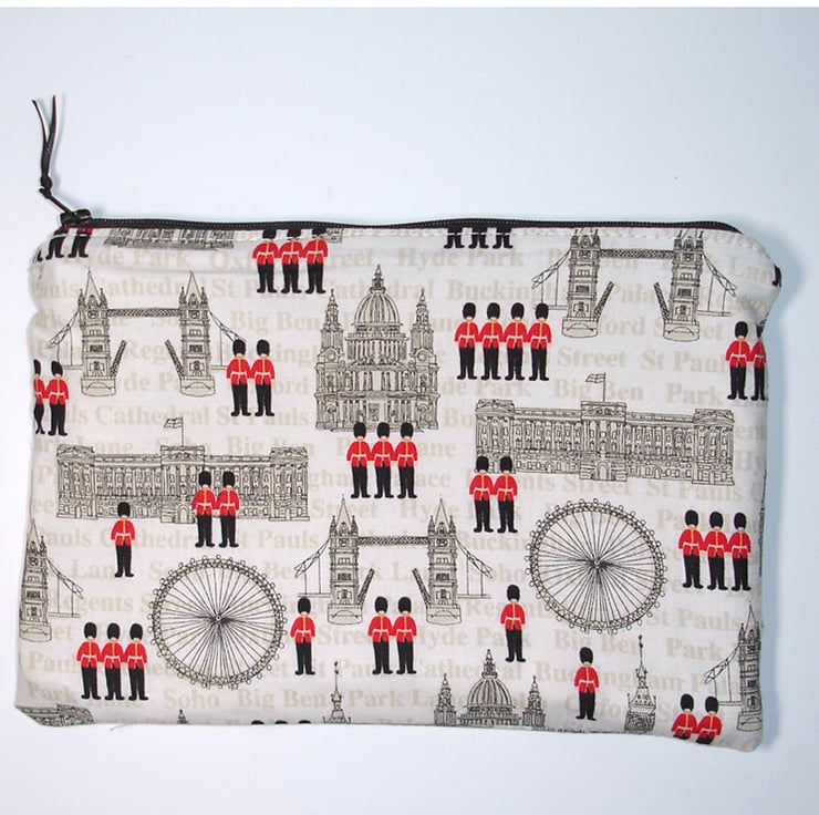 Featuring London Icons - The London Eye / Tower Bridge / Buckingham Palace / Guards in Red Gold and Black