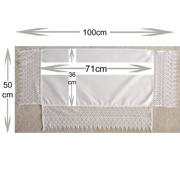 Measuring Approx 100cm x 50cm with 15cm Crochet Lace finish to three sides.