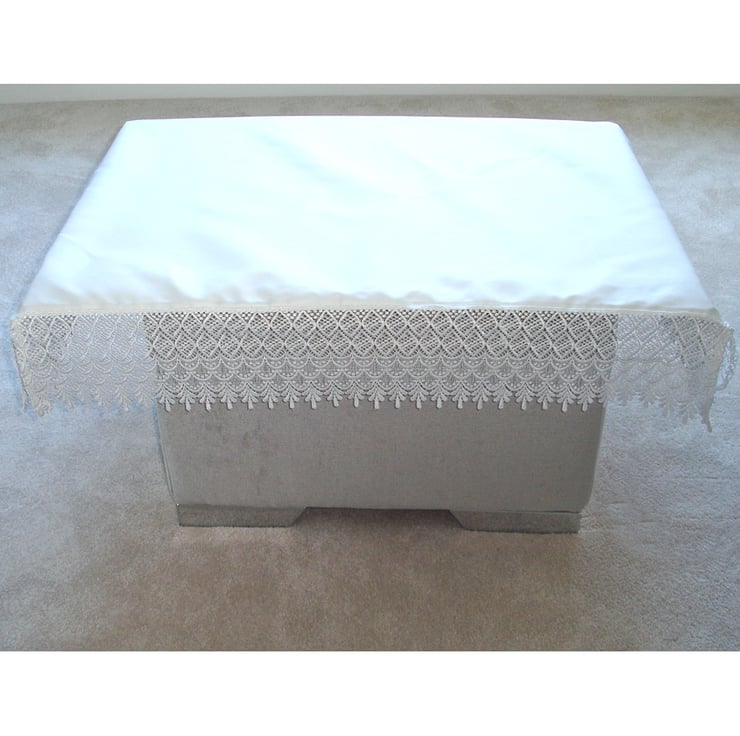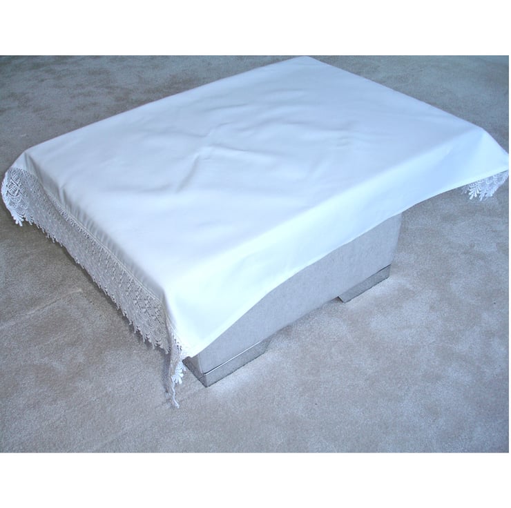 More Ecclesiastical Linens in my store or contact me for a custom made bespoke covering. I have a choice of white cotton, linen, lace trimmings and gold brocade fabric in stock.