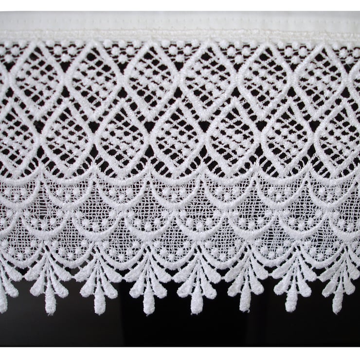 The lace is as pictured and is included in the measurements from end-to-end.