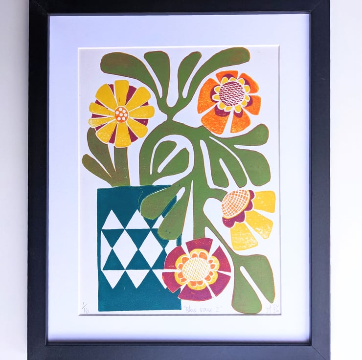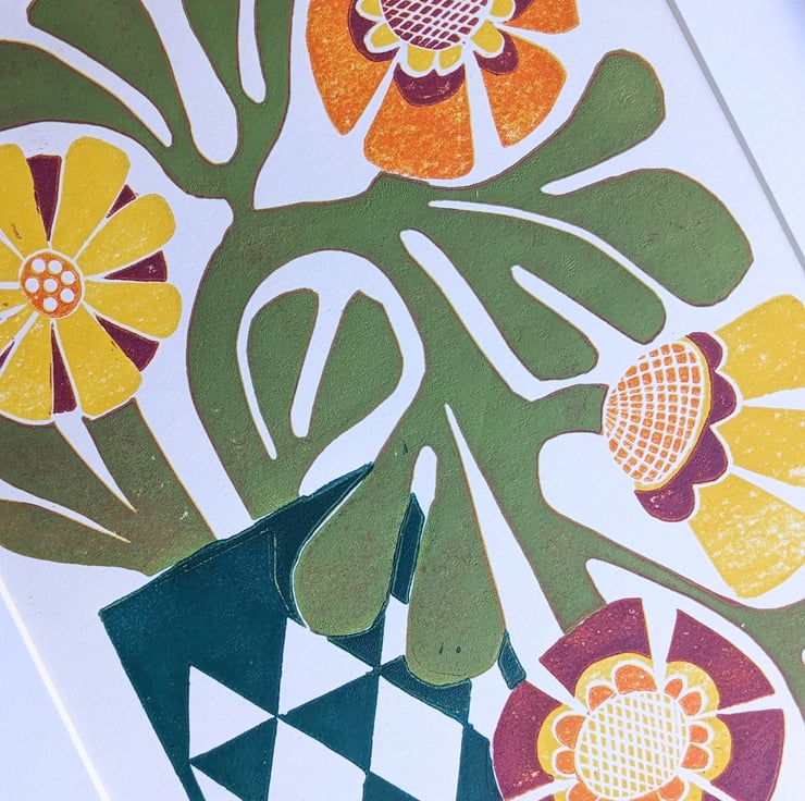 Handmade original reduction Linocut printed onto off-white 190gsm acid-free paper using gorgeous vibrant inks.