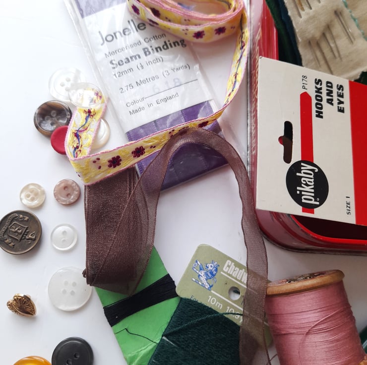 I love all haberdashery, especially pieces that some people easily discard, such as buttons. I have a huge collection of haberdashery that I have been collecting for the past 30 years and more, so I thought I would create little vintage style kits to encourage your own collection to cherish and use, which I love to do.