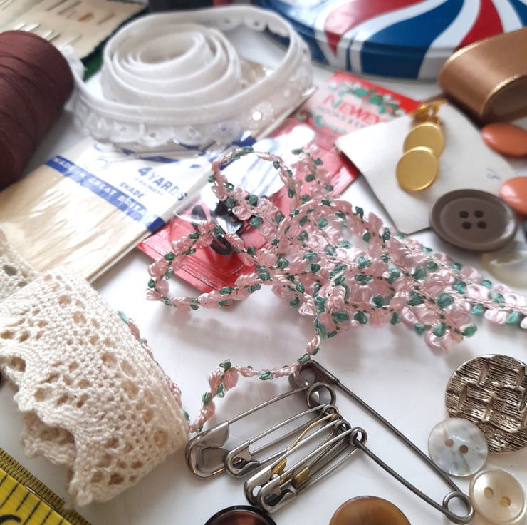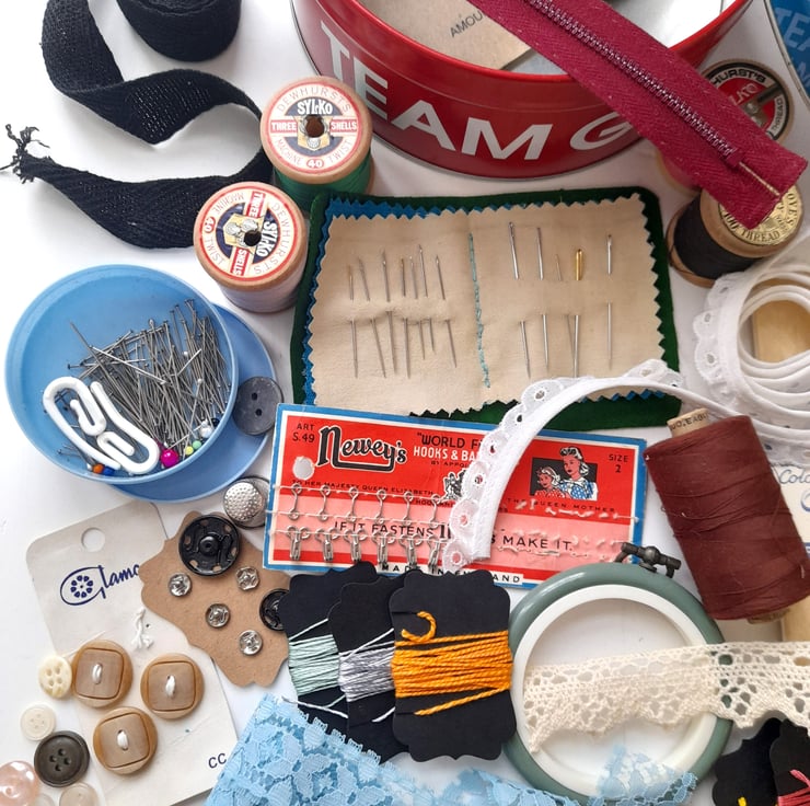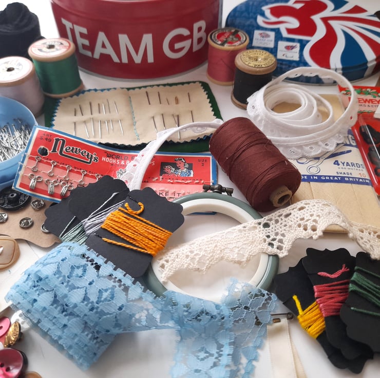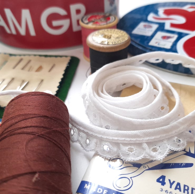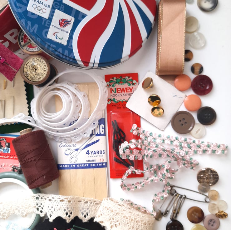 This lovely sewing kit includes all the essentials to make your sewing projects a dream. Although it is curated mainly with vintage pieces, all are perfectly functional. From needles and thread to pins and ribbons - it's a lovely collection, all neatly contained within an old biscuit tin from the 2012 London Olympics.