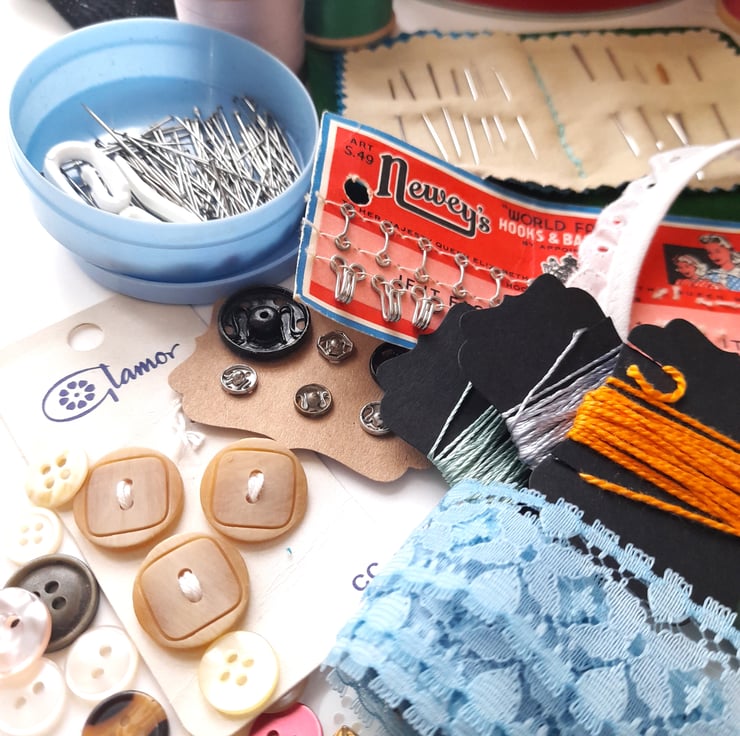 I love all haberdashery, especially pieces that some people easily discard, such as buttons. I have a huge collection of haberdashery that I have been collecting for the past 30 years and more, so I thought I would create little vintage style kits to encourage your own collection to cherish and use, which I love to do.