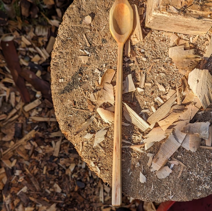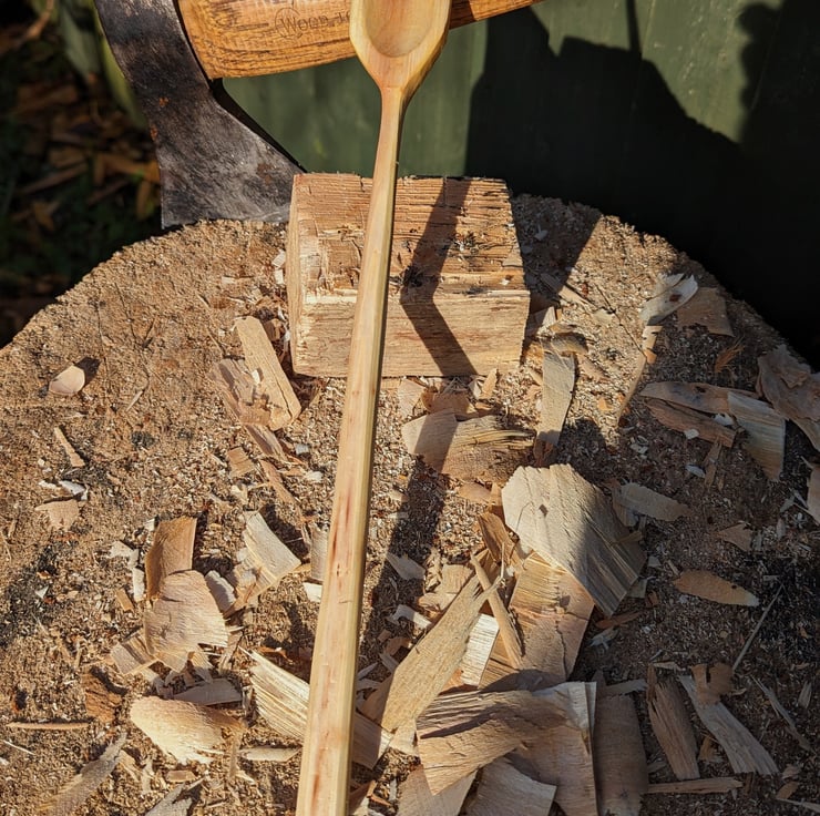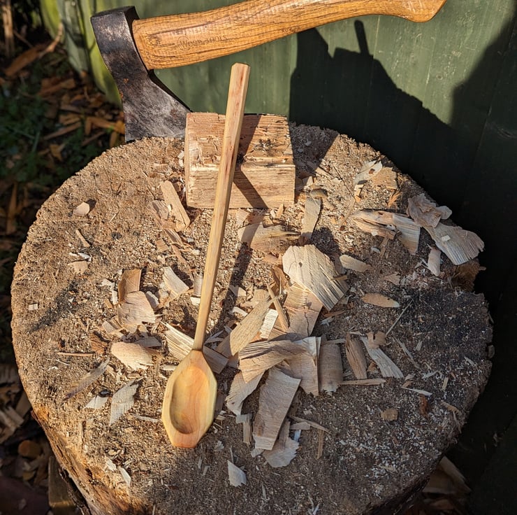 Hexagonal bowl serving spoon, made from Birch wood, collected in East London natives woods.