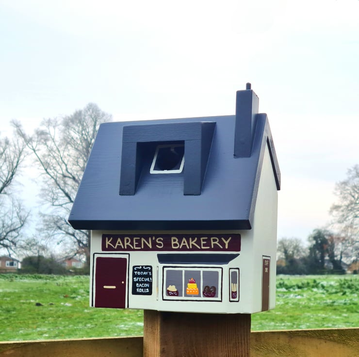 Our bakery bird box with its personalised name will delight the garden and bird lover.