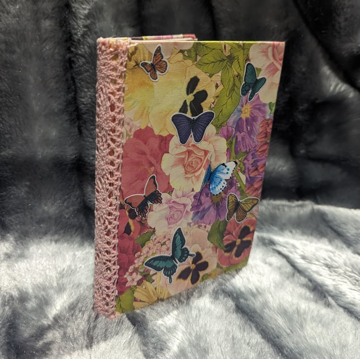 Small journal with a flowery cover with butterfly stickers, and one 3d butterfly ideal for a young girl