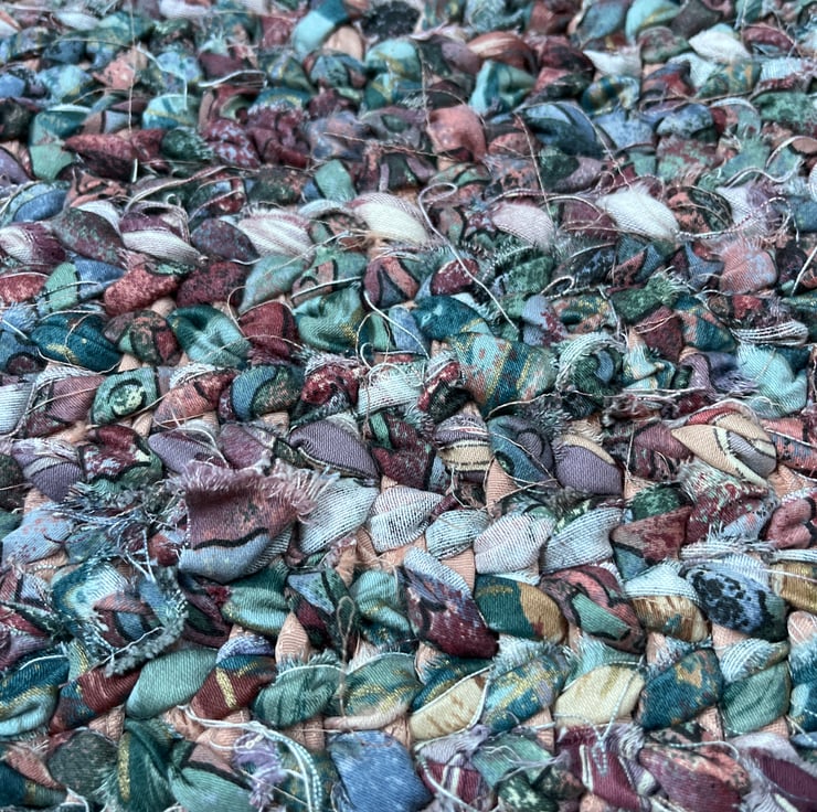 Each rug takes around 6 hours to produce. The fabrics are all guaranteed recycled making this an environmentally-friendly product.