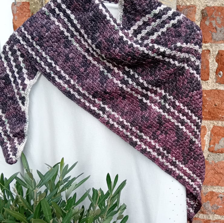 I love vintage crochet shawls in the traditional triangular shape. This was my inspiration for this shawl together with some beautiful deep purple yarn I bought! the shawl would look just as good in a pastel shade, perfect for summer.
