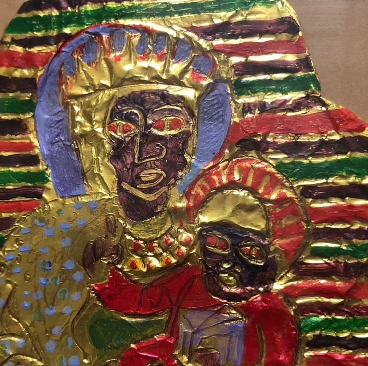 Painted with acrylic paint, using foil & glue to create an etched, relief effect to this beautiful little work, which comes ready to hang in a recycled glazed frame. Image size18x10cm,frame is 22x17cm