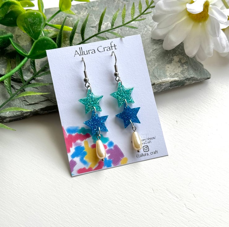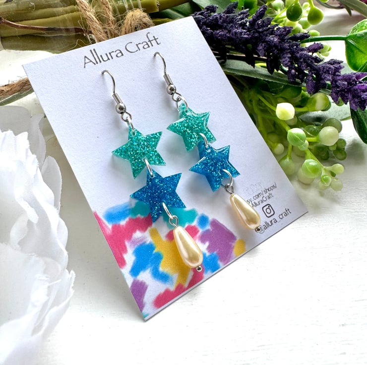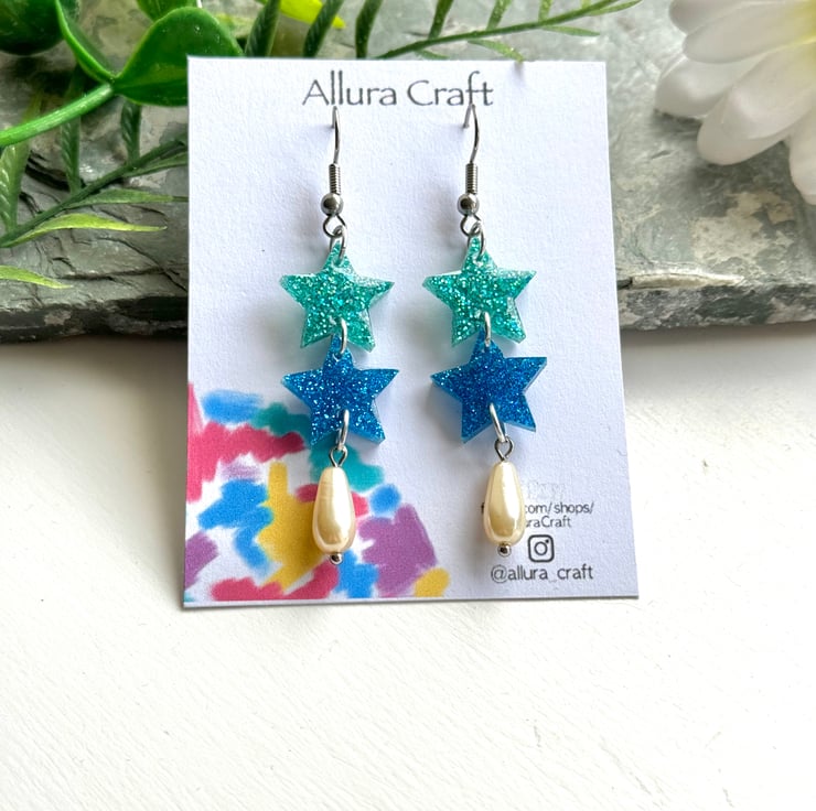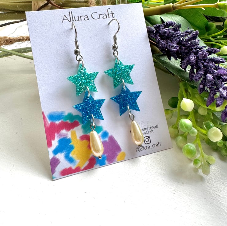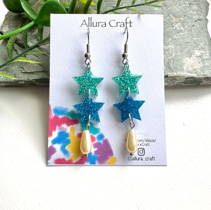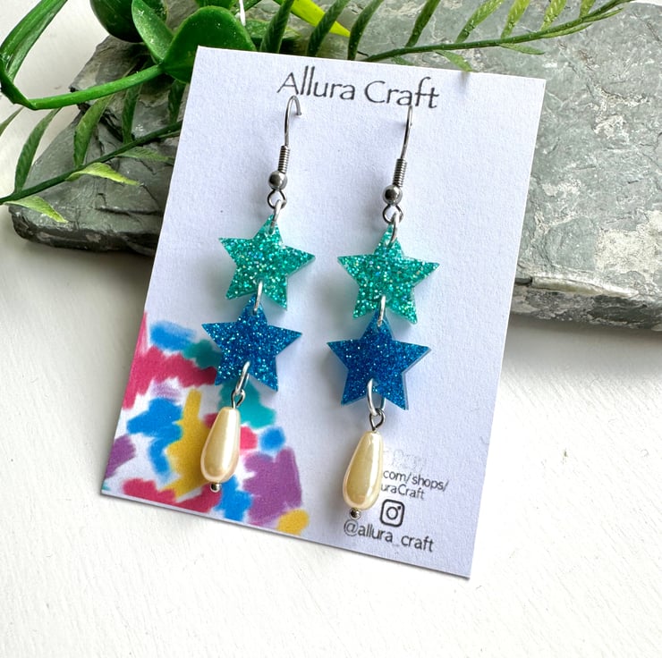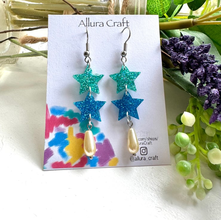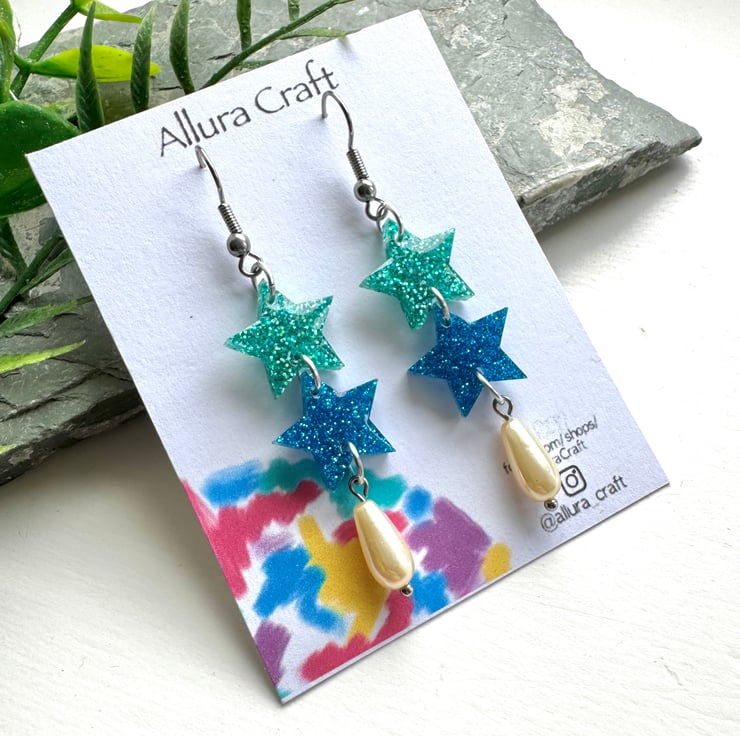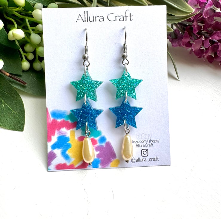 Glitter Acrylic Stars in summer turquoise and sea blue hues
