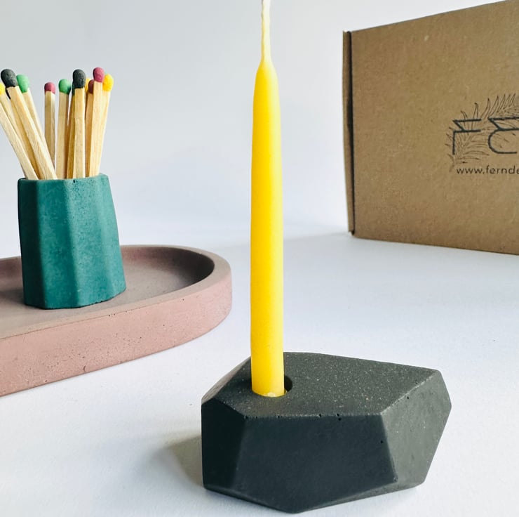 Each candle holder is cast from concrete and water based pigments in small batch production.