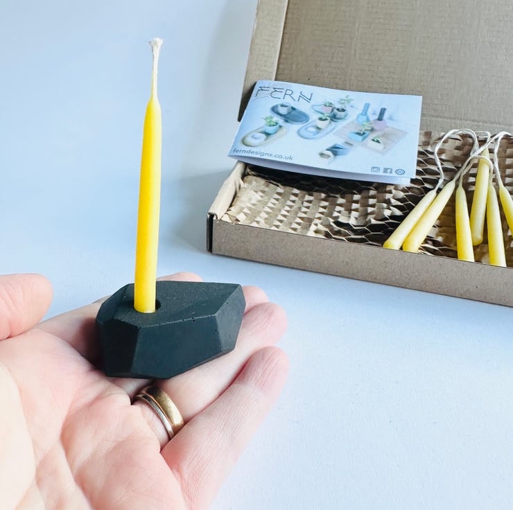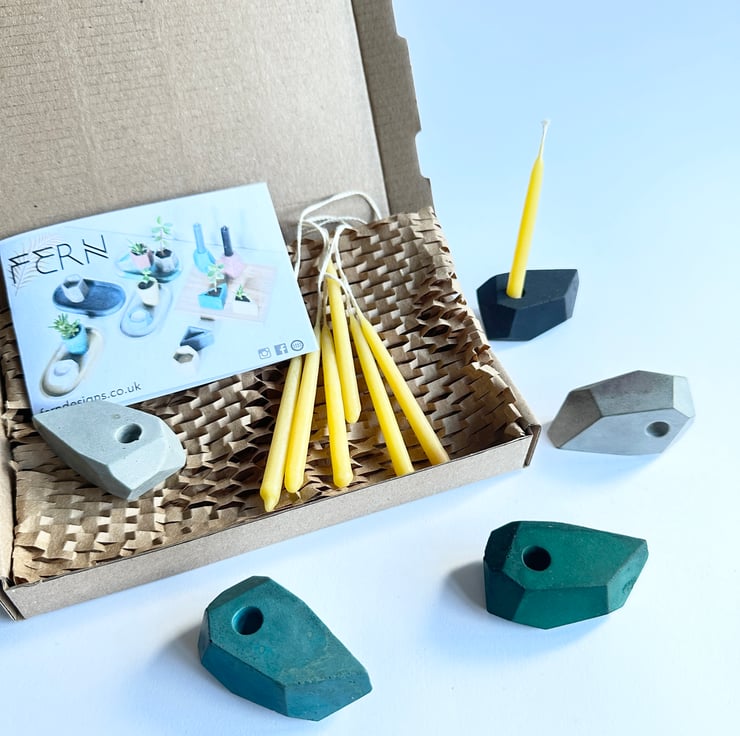 Each set comprises of an individually cast concrete miniature candle holder,