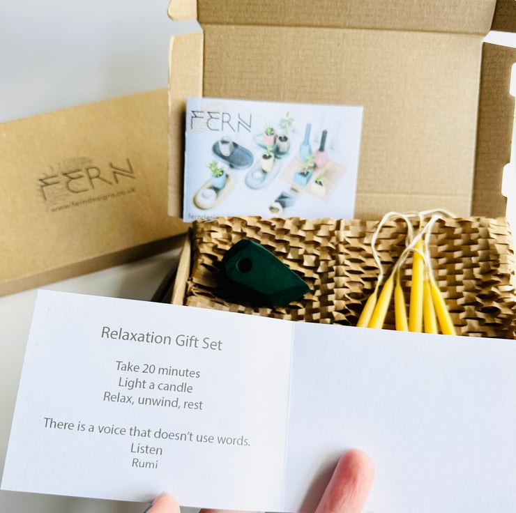 The candle holders are available in five of our statement, mid-century inspired, pigment shades and a recycled card gift box is included.