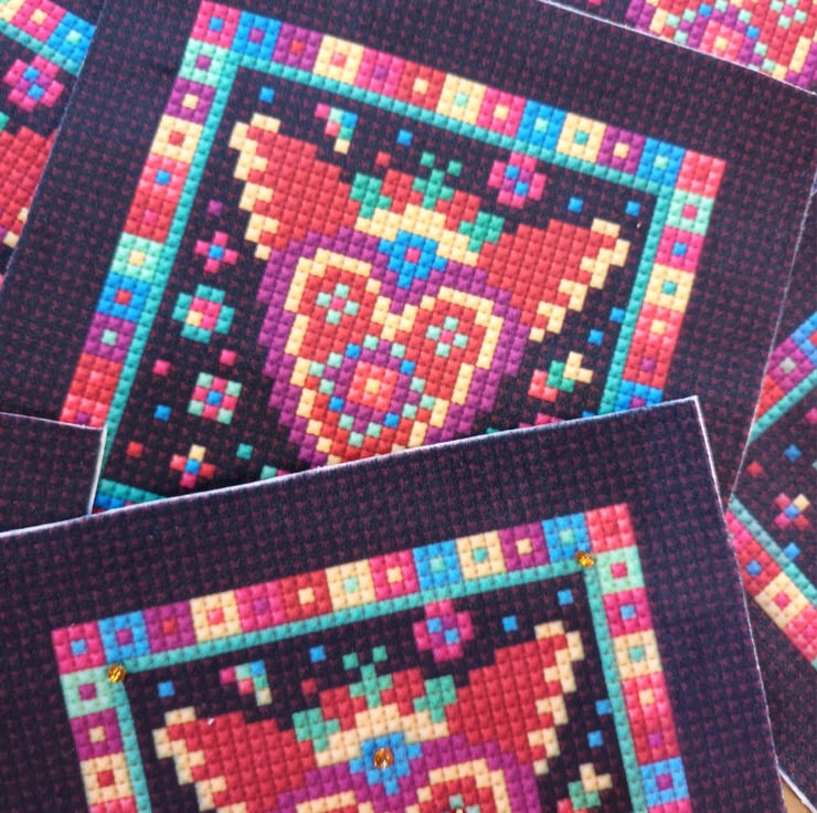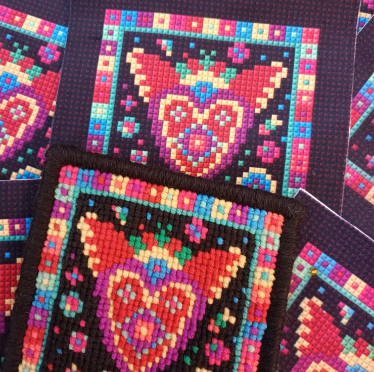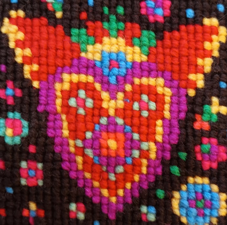 This is one of my own designs which has been digitally printed onto soft touch velvet fabric. The tapestry kit to sew the original embroidery is available from another listing.
