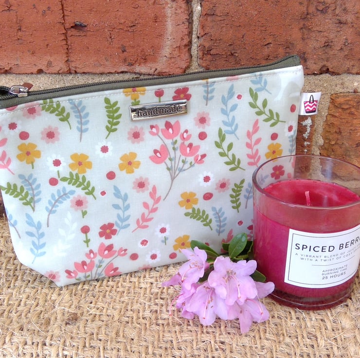 Pretty spring rabbit PVC small zip pouch, measures approx. 20cm x 14cm with a base of approx. 7cm.