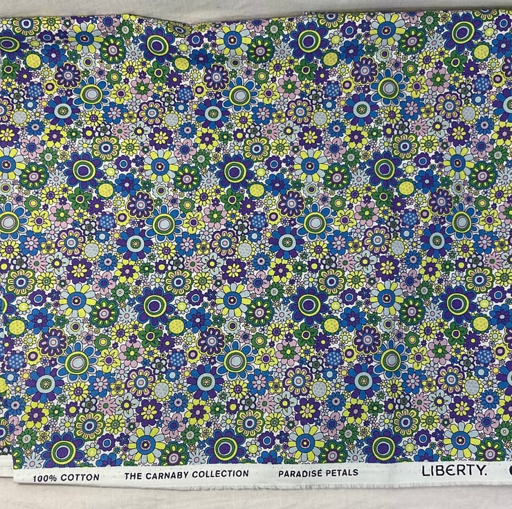 This Liberty print is “ Paradise Petals” a pretty retro floral print on an off white base with.