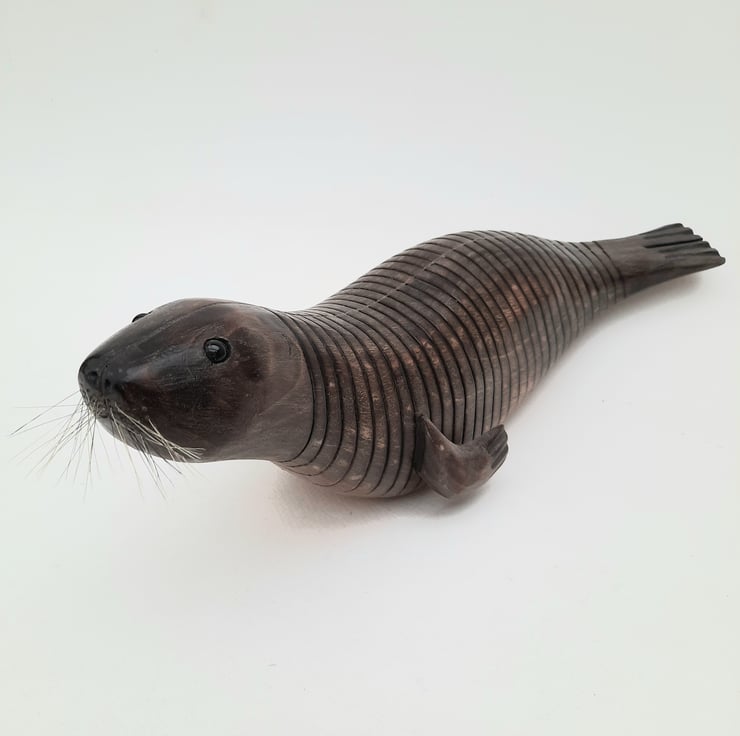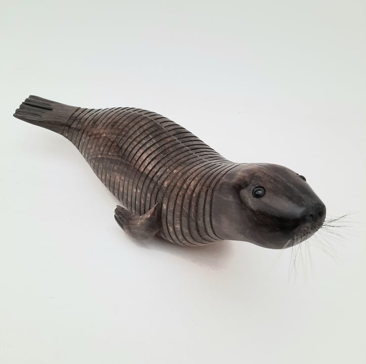 40cms articulating seal in beech. I have lightly torched the surface which produces a smooth sheen. Postage by Special delivery