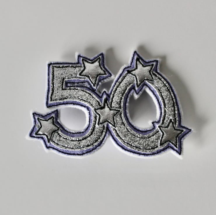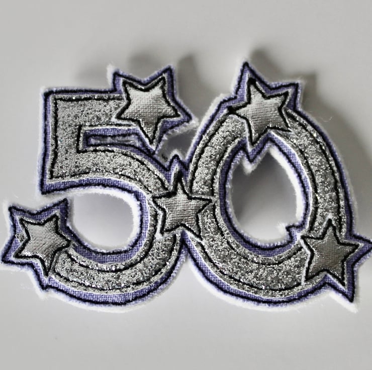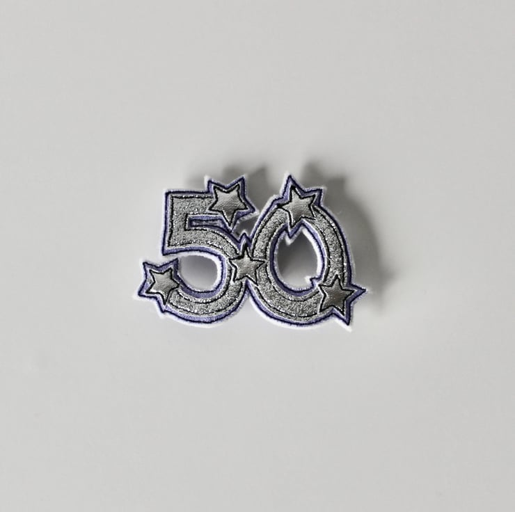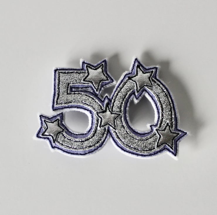 Fifty brooch measures approximately 4cm by 6cm and will be sent in a glassine envelope with a label to close.