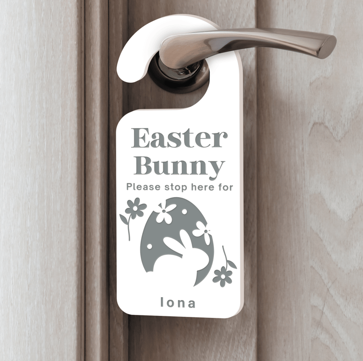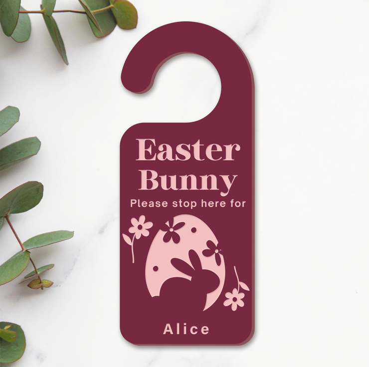 Welcome the Easter Bunny with a special touch! Our engraved acrylic door hanger is the perfect addition to your child's bedroom door, creating a magical atmosphere during the Easter season. Personalise it with their name to make it uniquely theirs.