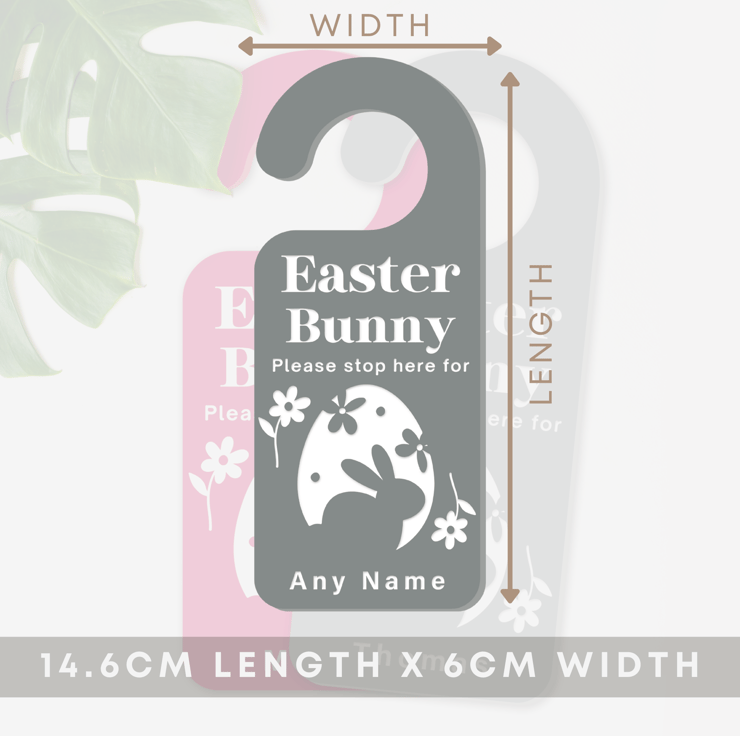 Easter Bunny Stop Here Sign - Egg & Flowers: Personalised Easter Door Hanger