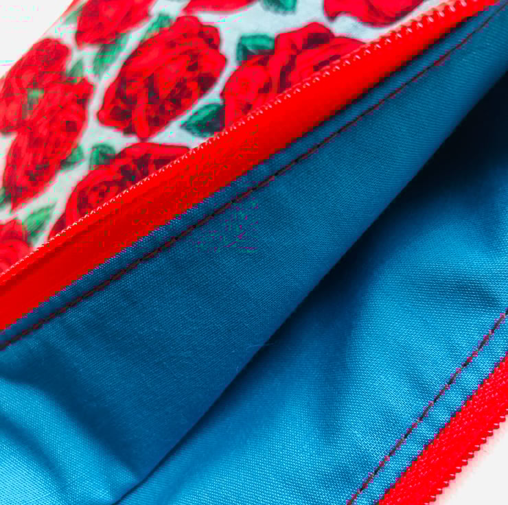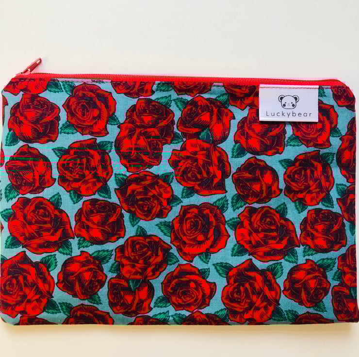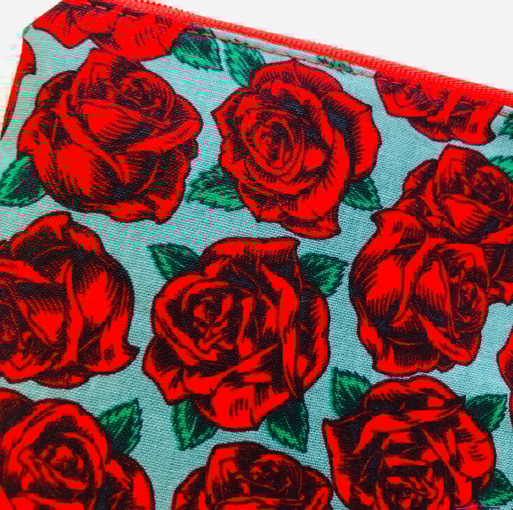 Channel your inner bombshell with this stunning pouch. The bold red rose design evokes 1950s style, while its practical size and secure zip closure make it perfectly suited for today.