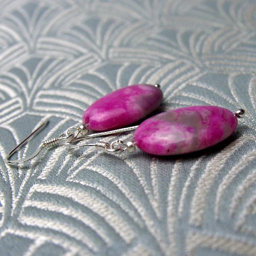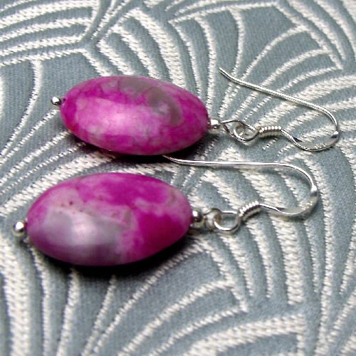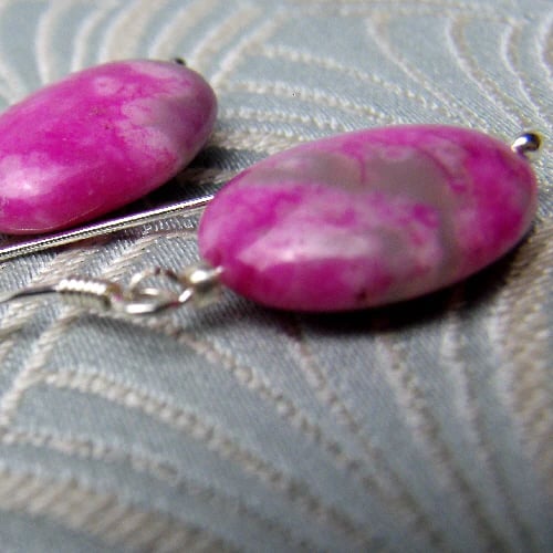 Pretty pink jasper earrings handmade from 20mm x 15mm oval shaped pink semi-precious beads.