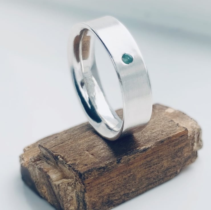 Surface is flat and polished the inner of the ring is curved that is an extremely comfy ring to wear.
