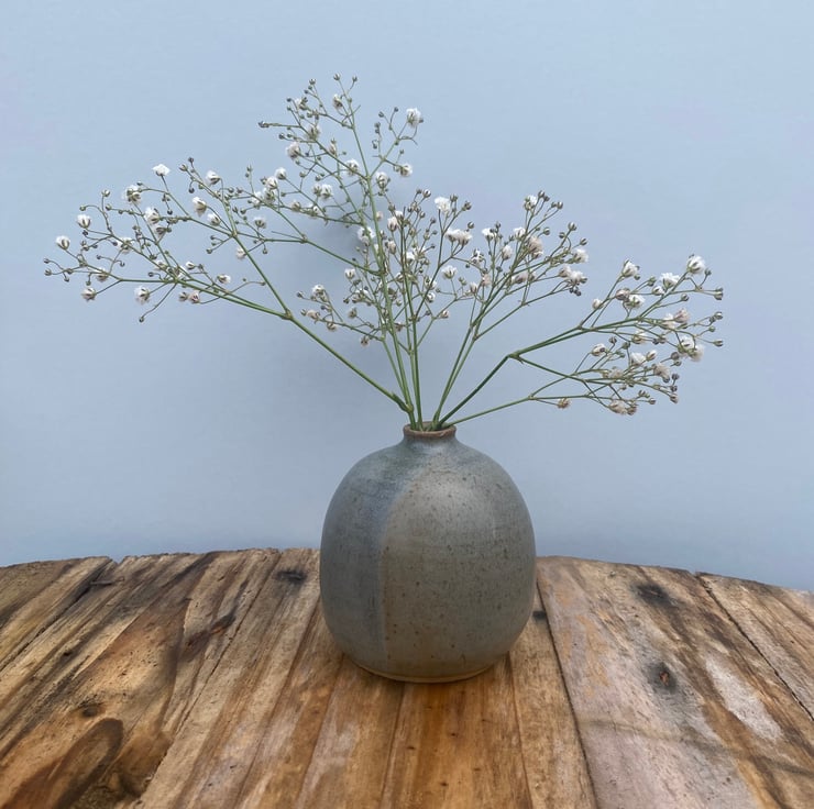 Glazed with from my own glaze range and fired to 1250c. This vessel is perfect for loose stems.