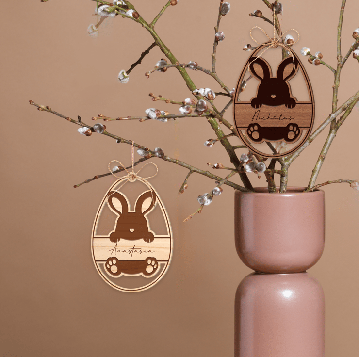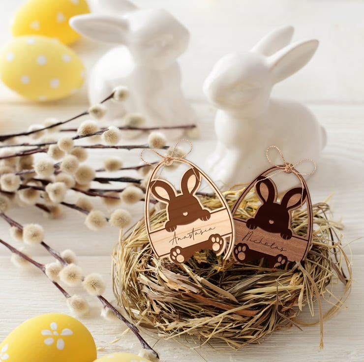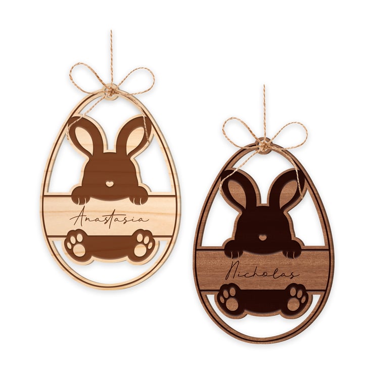 Each tag features a sweet bunny silhouette design, perfect for capturing the joy and spirit of the season. What makes these tags truly special is the personalised touch – simply provide us with the name you'd like to include, and we'll skillfully engrave it onto the tag, making it a unique keepsake for years to come.