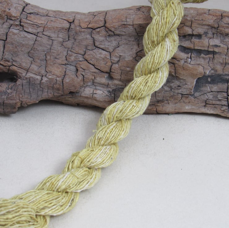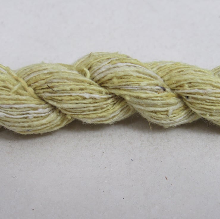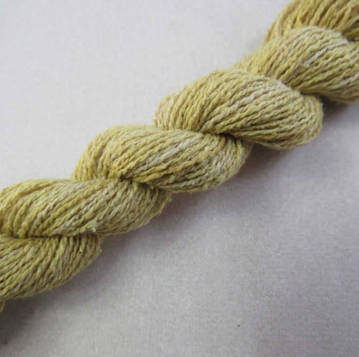 40m of lace-weight (172nm) pure spun bourette silk, dyed with natural weld dyes.