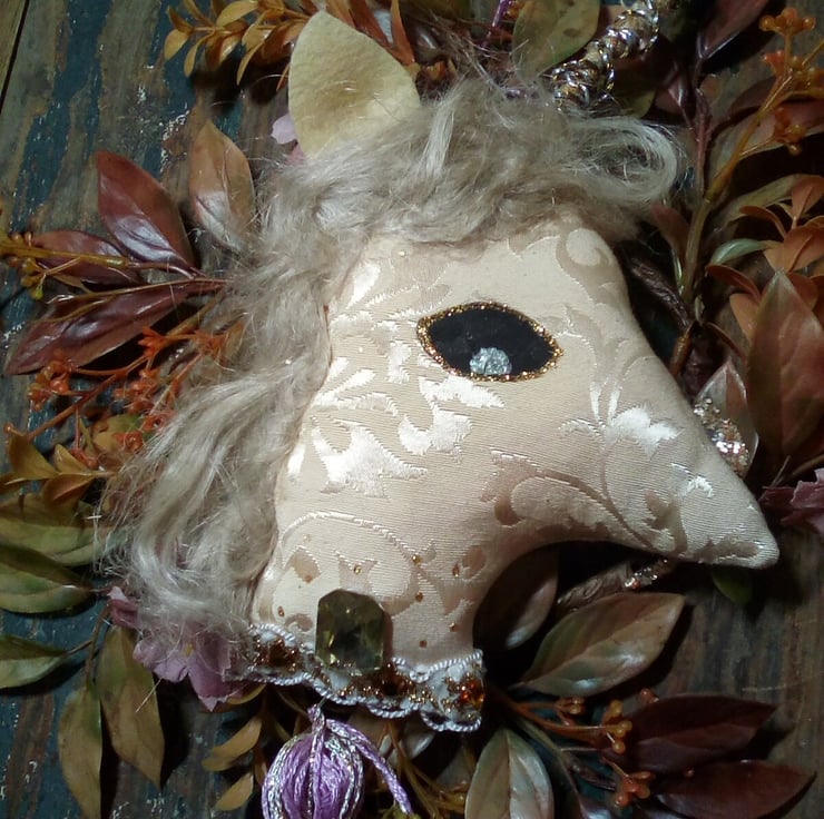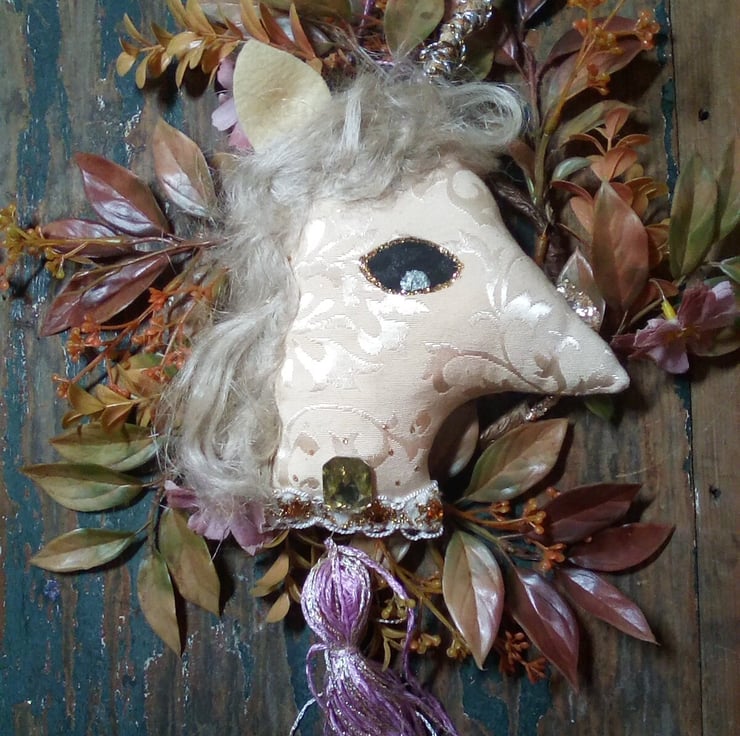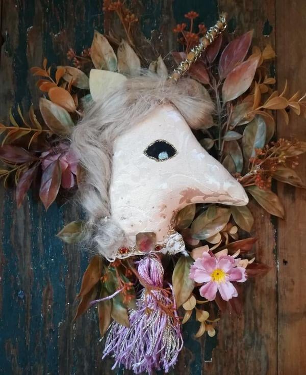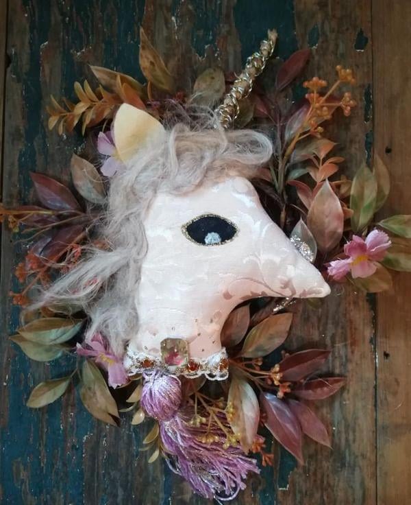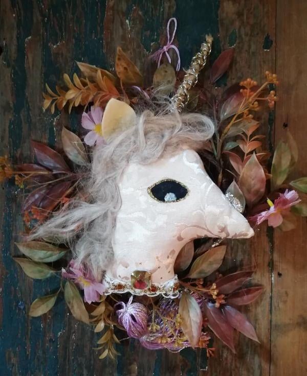 A special textile art unicorn wreath, inspired by medieval tapestries and fantasy tales,
