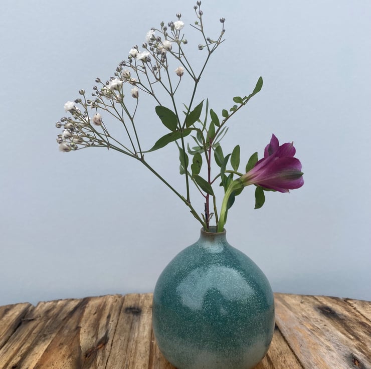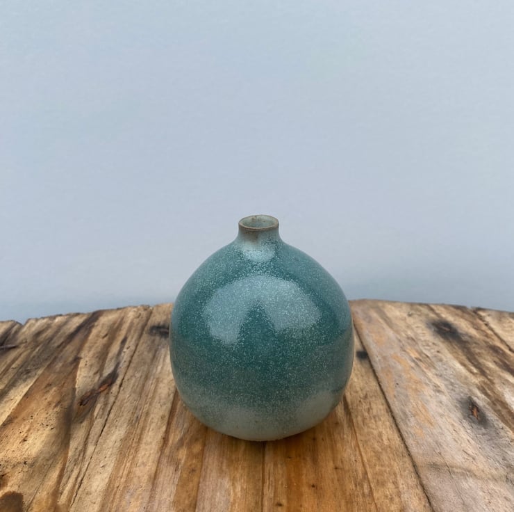 A spherical stoneware stem vase, wheel thrown in my small garden studio in Chester.