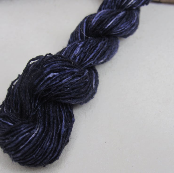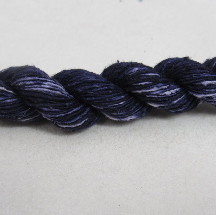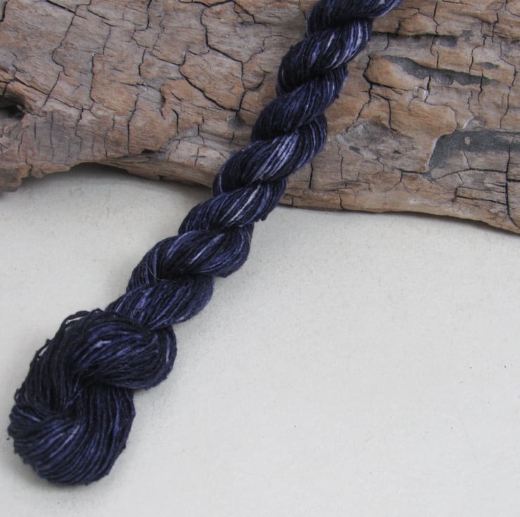 40m of lace-weight (172nm) pure spun bourette silk, dyed with natural logwood dyes.