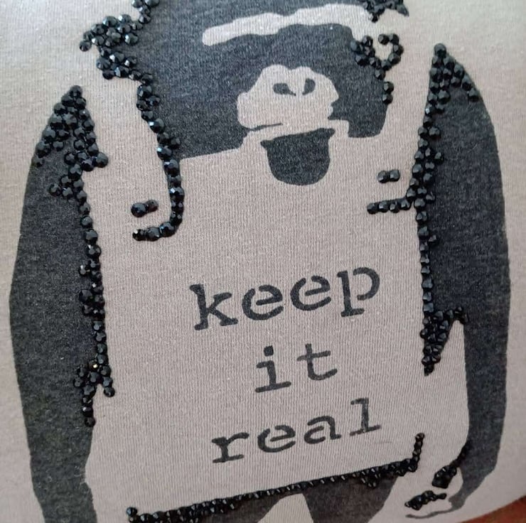 Upcycled from a T-shirt and some leftover wool. Loved the print and though it would make a fun, decorative cushion.