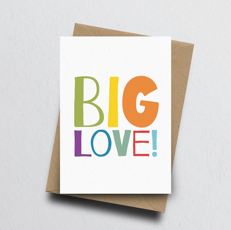 Send huge love with this colourful handmade eco-friendly A6 card.