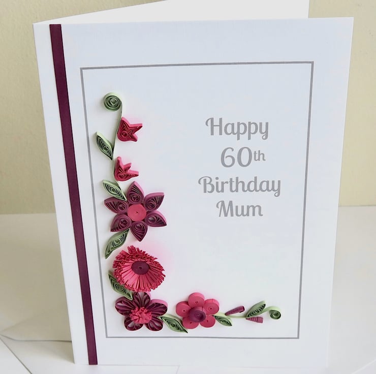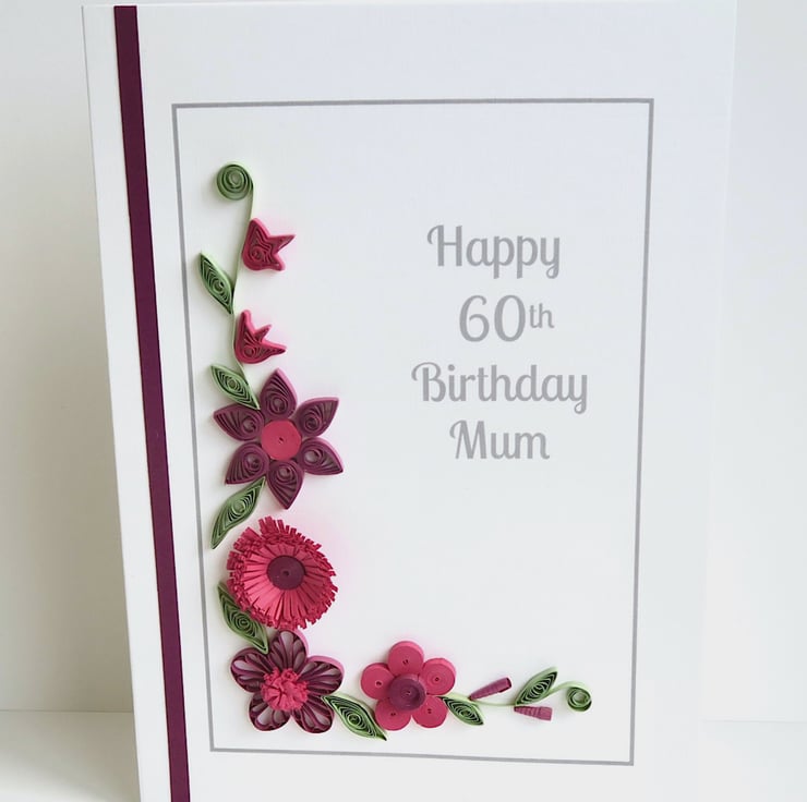 Personalised quilled 60th birthday card, handmade, with quilled flowers