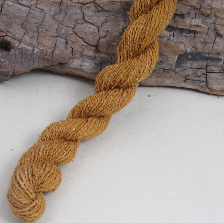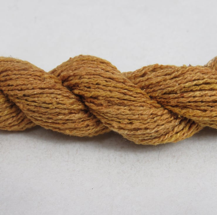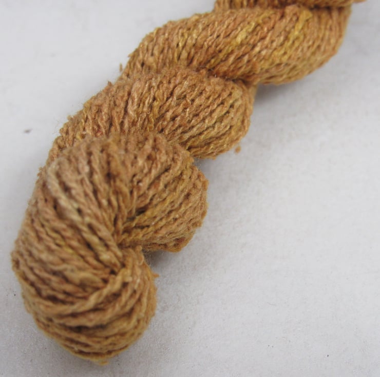 40m of lace-weight pure spun bourette silk, dyed with natural onion dyes.