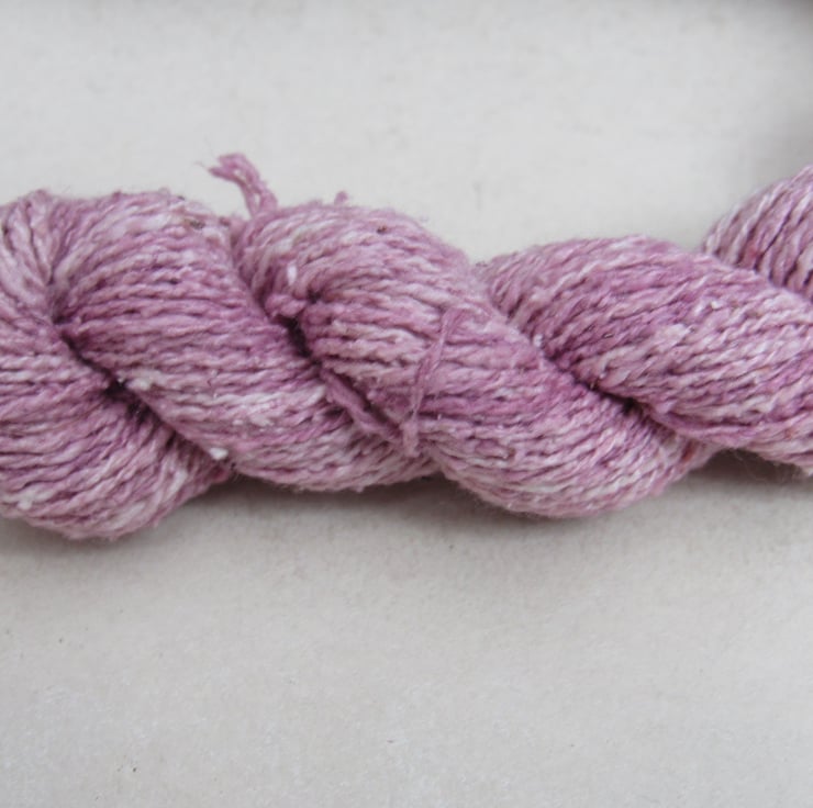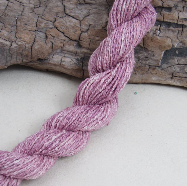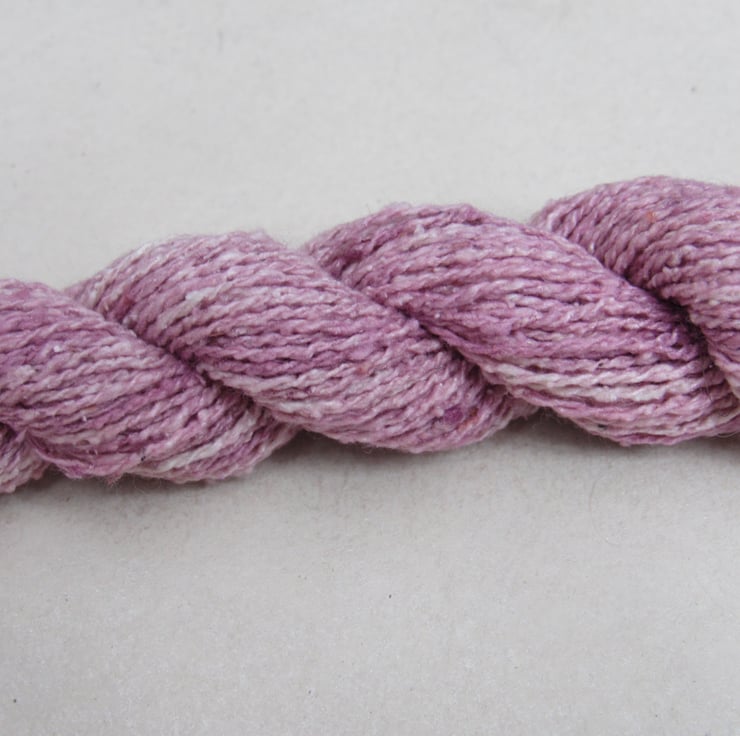 40m of lace-weight pure spun bourette silk, dyed with natural cochineal dyes.