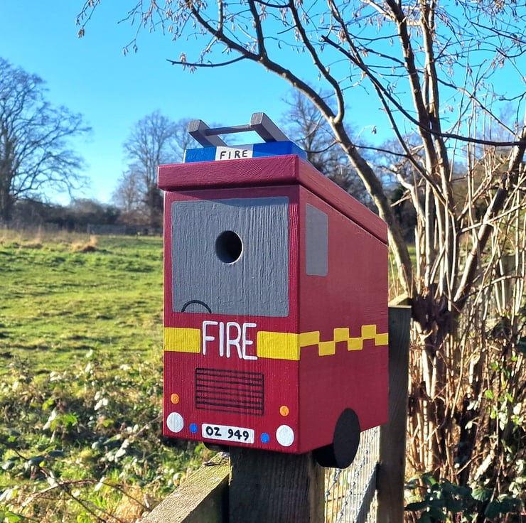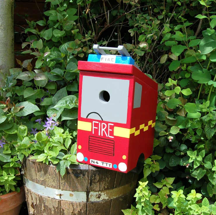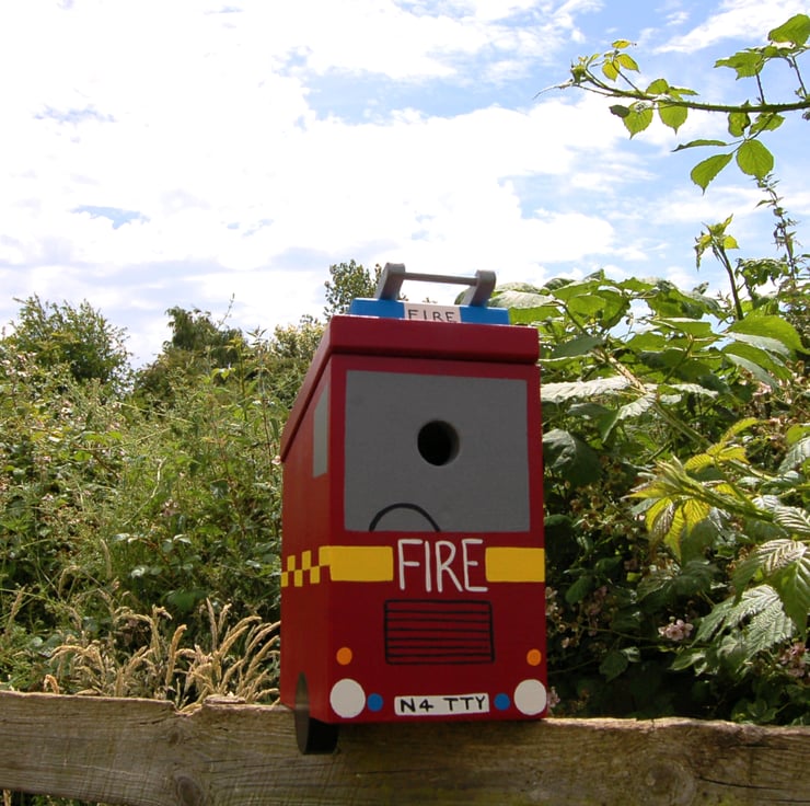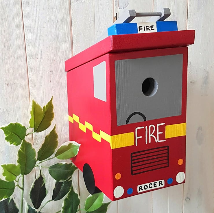 A treat for the birds: they can now go in a fire engine with this handmade personalised fire engine bird box!